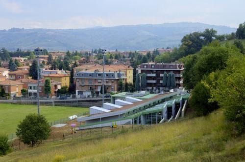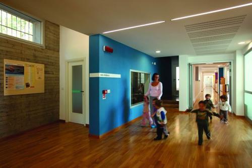 ccd studio設(shè)計的位于意大利維尼奧拉的Barbapapà幼兒園,是一項舉辦的設(shè)計競賽。該幼兒園位于城市開發(fā)區(qū)的邊緣地帶的山坡之上,離城市歷史中心并不太遠(yuǎn),它可以容納60個兒童,由4間教室組成。工程的目標(biāo)是達(dá)到可持續(xù)性的要求,這點從建筑的各個方面都可以體現(xiàn)出來,并且建筑本身也將這種可持續(xù)性的價值傳遞給了孩子們。