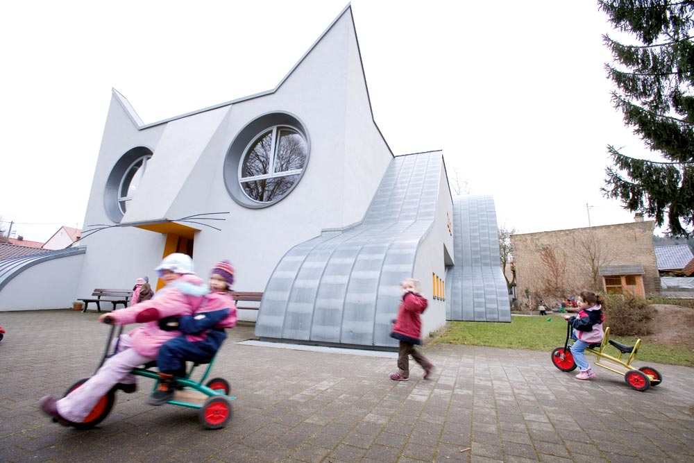 貓形幼兒園。位于德國Wolfartsweier,由知名藝術家Tomi Ungerer設計。其靈感來源于他最喜愛的動物——貓。貓嘴是門,肚子是更衣室、教室、廚房與餐廳,頭部是娛樂場,尾巴是緊急逃生通道,頭頂上還有草坪以模仿貓的皮毛。貓爪子要是滑梯就更有趣了。