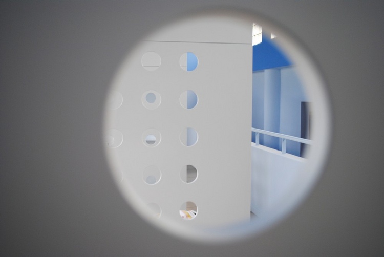 睡眠空間包含兩部分,一是隱藏空間,一是“凹處”。“隱匿處”的穿孔木制面板創(chuàng)造了獨(dú)立而且光學(xué)連續(xù)性良好的房間,而在“凹處”靠床一面的墻壁則被加厚,床深深嵌入環(huán)繞它的墻壁里,保證了在公共房間內(nèi)的隱私。
