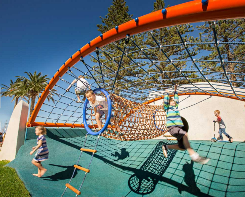 在澳大利亞亞格萊內(nèi)爾格前灘游樂(lè)場(chǎng)將海灘之旅改造成一場(chǎng)冒險(xiǎn)之旅,以新型、富于想象力和創(chuàng)新的方法游樂(lè)孩子們。該游樂(lè)場(chǎng)為了改善自然游樂(lè)場(chǎng)以及危機(jī)-效益原則,將有身體、感覺(jué)、認(rèn)知和智力殘疾的兒童融入進(jìn)來(lái)。