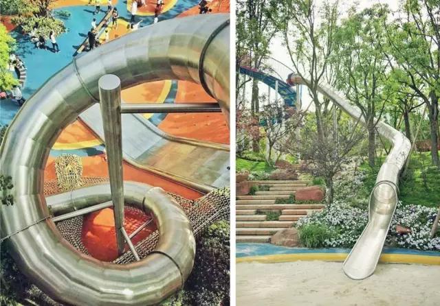 設(shè)計(jì)師甚至精心點(diǎn)綴了藍(lán)天白云在其間彩虹滑梯的兩條滑道,提供了兩種完全不同的滑行體驗(yàn)。