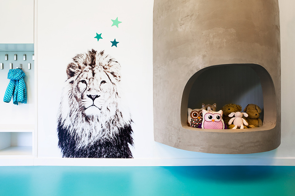 幼兒園室內(nèi)設(shè)計(jì)是運(yùn)用無(wú)棱角的設(shè)計(jì),這樣可以保證孩子們的安全可以值得孩子們更加健康愉快的去成長(zhǎng)。在室內(nèi)采用的是簡(jiǎn)潔的白色,在墻上都著威武的獅子,可愛(ài)的兔子,和萌萌的小貓等等可愛(ài)的動(dòng)物們,在室內(nèi)還有一些卡通的圖畫,和幼兒園的配色互相搭配充滿活力,其創(chuàng)造性的藝術(shù)空間能夠十分有效的激發(fā)孩子們的想象力與創(chuàng)造力。