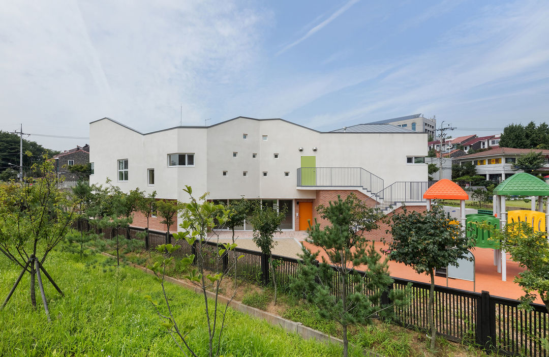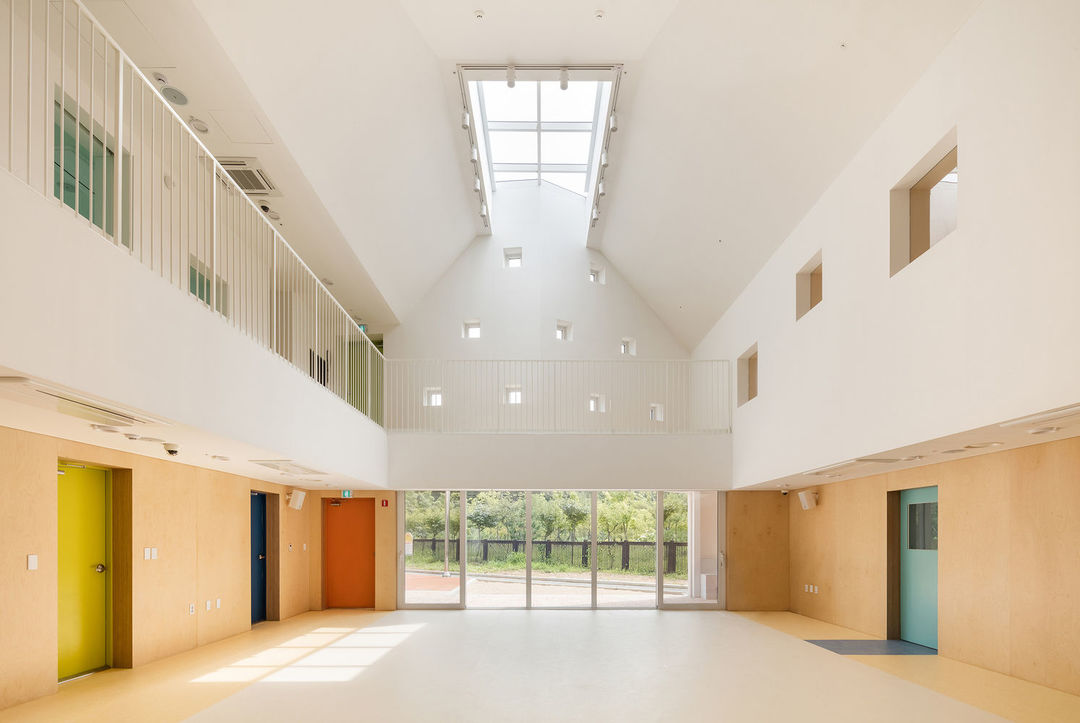這是一家在韓國首爾的幼兒園,外觀上最明顯的標(biāo)志是不規(guī)則的屋頂,雖然還是用的青瓦,它的起伏和轉(zhuǎn)折并不連貫,倒像是將不同幢房子拼在一起了。每一個(gè)房間都只有一種顏色,但光線和轉(zhuǎn)折的墻面讓每個(gè)房間都非常獨(dú)特,越來越多的幼兒園融入了設(shè)計(jì)者對于早期教育的想法。有的放任玩耍,寓教于樂,也有通過建筑設(shè)計(jì)來影響兒童的世界觀。