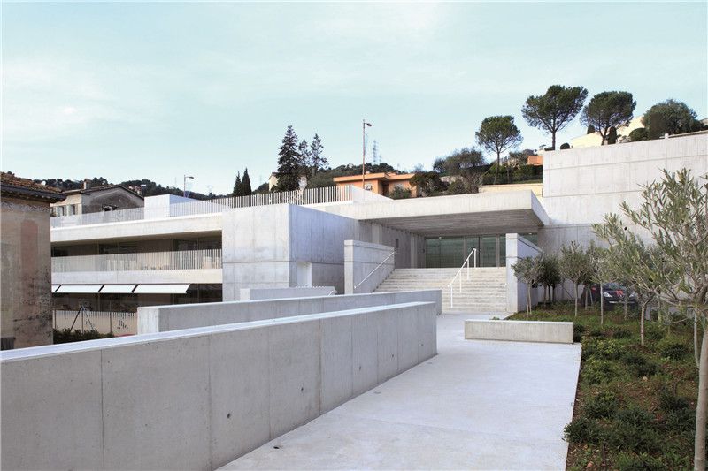 兒童日托中心和山坡之間形成了一個(gè)空間,因此設(shè)計(jì)者利用封閉式的天窗設(shè)計(jì)一直延長(zhǎng)到與北側(cè)建筑互相連接。站在中庭當(dāng)中,我們能夠?yàn)g覽到山坡上整個(gè)建筑的環(huán)境。這家日托中心室內(nèi)外的自然環(huán)境聯(lián)系,真如同天空與大地的環(huán)境聯(lián)系一樣。隨著利用凝土墻將公路的封閉,使環(huán)境既保留了建筑的特點(diǎn),又是景觀(guān)具有獨(dú)立性,設(shè)計(jì)團(tuán)隊(duì)在針對(duì)日托中心的視覺(jué)朝向進(jìn)行設(shè)計(jì)時(shí),堅(jiān)持了認(rèn)真和謹(jǐn)慎的觀(guān)點(diǎn)。