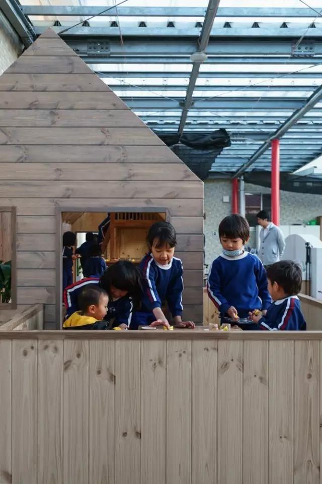 位于日本佐賀縣一所學(xué)校的一個(gè)區(qū)域一個(gè)僅僅十五平方米占地面積在今年建成,這個(gè)是建筑在幼兒園一角的,幼兒園方面希望能夠通過角色扮演來對(duì)孩子的創(chuàng)造能力進(jìn)行更進(jìn)一步的開發(fā),幼兒園方面邀請(qǐng)了五年前為幼兒園設(shè)計(jì)的設(shè)計(jì)師進(jìn)行設(shè)計(jì),設(shè)計(jì)師認(rèn)為只有用心打造的區(qū)域才能獲得孩子們的認(rèn)同。