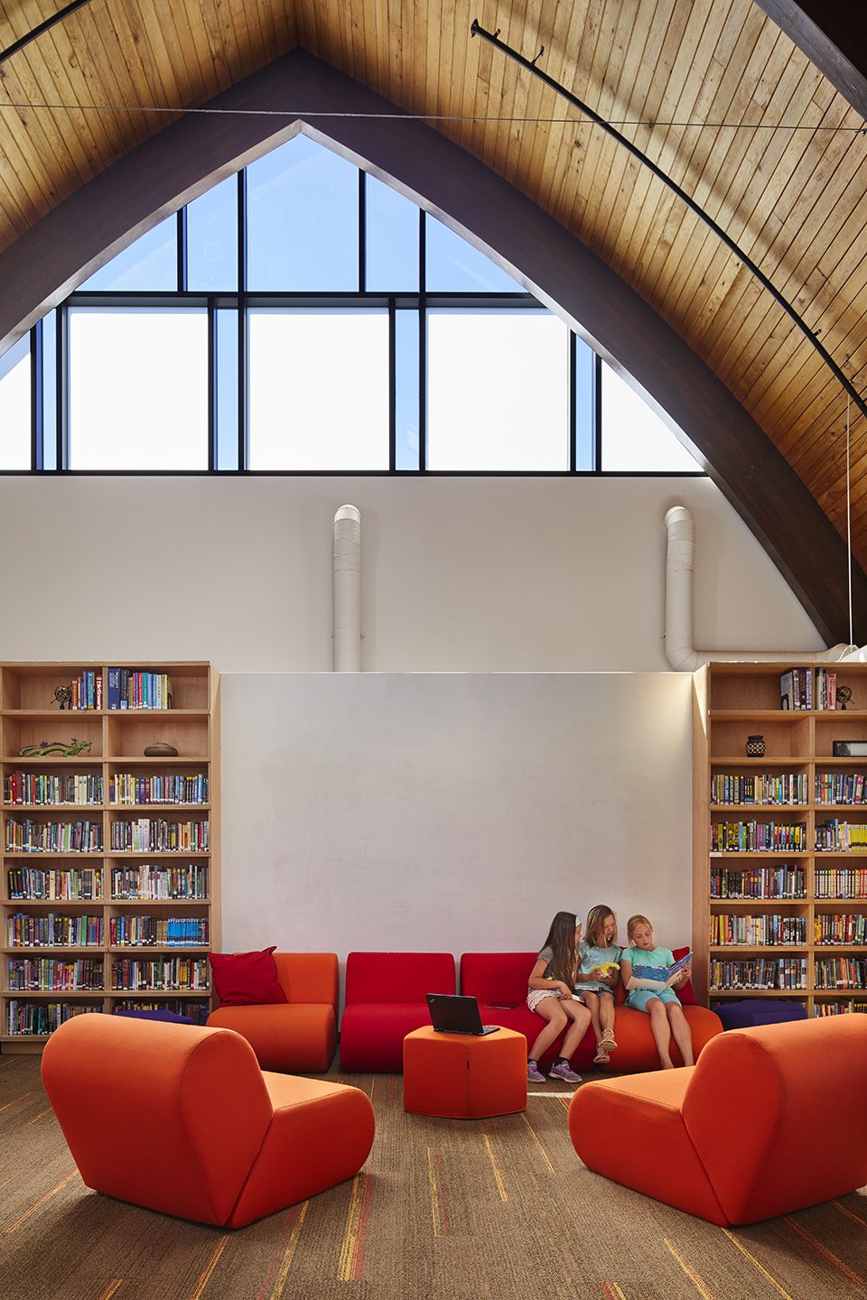 設(shè)計(jì)的挑戰(zhàn)在于如何使既有建筑與新的入口大廳形成連接,同時(shí)傳達(dá)出一種統(tǒng)一感。新的建筑提供了大量具有鼓勵(lì)性的學(xué)習(xí)環(huán)境。嵌入教室墻壁的創(chuàng)意空間為自主交流和非正式的小組教學(xué)提供了靈活的場(chǎng)所。其他空間也致力于促進(jìn)互動(dòng)創(chuàng)新和引發(fā)好奇心。新的入口在建筑中心構(gòu)成了一個(gè)透明的集會(huì)和展示空間,使家長(zhǎng)、教學(xué)人員和學(xué)生能夠在這里聚集和溝通。5.5萬(wàn)平方英尺的建筑空間(既有面積3.5萬(wàn)平方英尺/擴(kuò)建面積2萬(wàn)平方英尺)最終將學(xué)校的過(guò)去與未來(lái)連接在一起。
