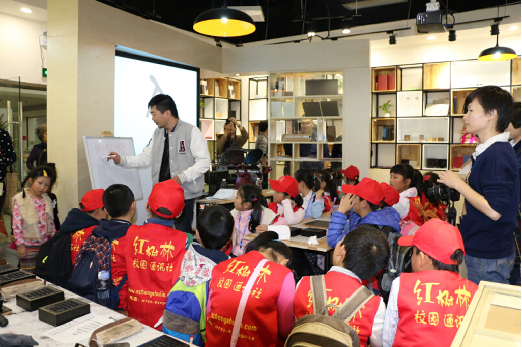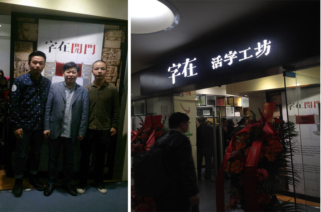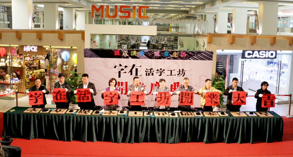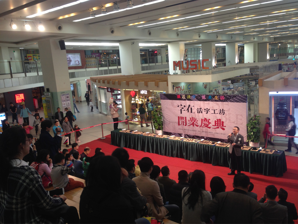 2015年1月25日,全新漢字體驗模式的「字在」活字工坊在深圳中心書城隆重開業(yè)啦!公司設計總監(jiān)賀維先生、創(chuàng)意總監(jiān)朱行奇先生受邀參加了開業(yè)儀式?!缸衷凇箘?chuàng)始人劉美松先生在開業(yè)儀式上強調:“活字有種集聚了五千年文明的力量,可惜現(xiàn)在我們對文字的感知只能停留在指尖輕輕劃落的那一瞬間,而活字工坊的存在可以讓這種觸摸變得樸實而有力量。”「字在」正著力打造一個集知識性、互動性、創(chuàng)新性的漢字“校外課堂”。